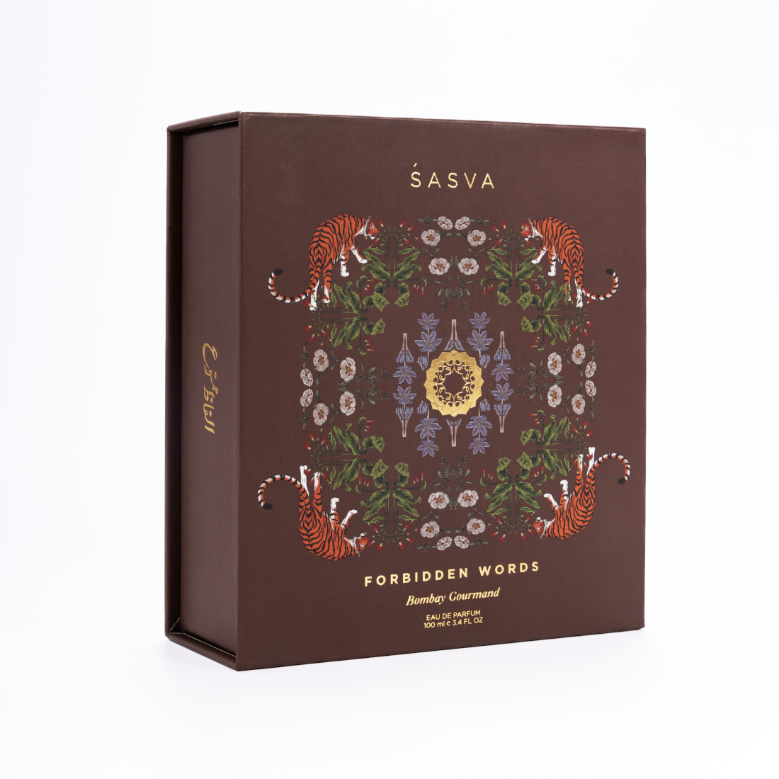 The heart of this fragrance lies in the interplay between the oud, salted caramel accord and vanilla which are complemented by a variety of oriental gourmand notes. Sweet orange and rose evoke Indian sweets, while patchouli, davana and labdanum create an airy and woody base that balances out the gourmand sensuality of the fragrance.